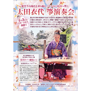 能登半島地震を乗り越え、3年ぶりに松川へ響く。「太田衣代 箏演奏会」開催のご案内 〜桜のトンネルの下、復旧のシンボル”若木”と共に〜