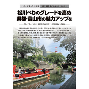 ・ グッドラックとやま 2026街づくりキャンペーン ・ 松川べりのグレードを高め 県都・富山市の魅力アップを 「グッドラックとやま」2015(平成25)年11月号座談会より再編集 富山市中...