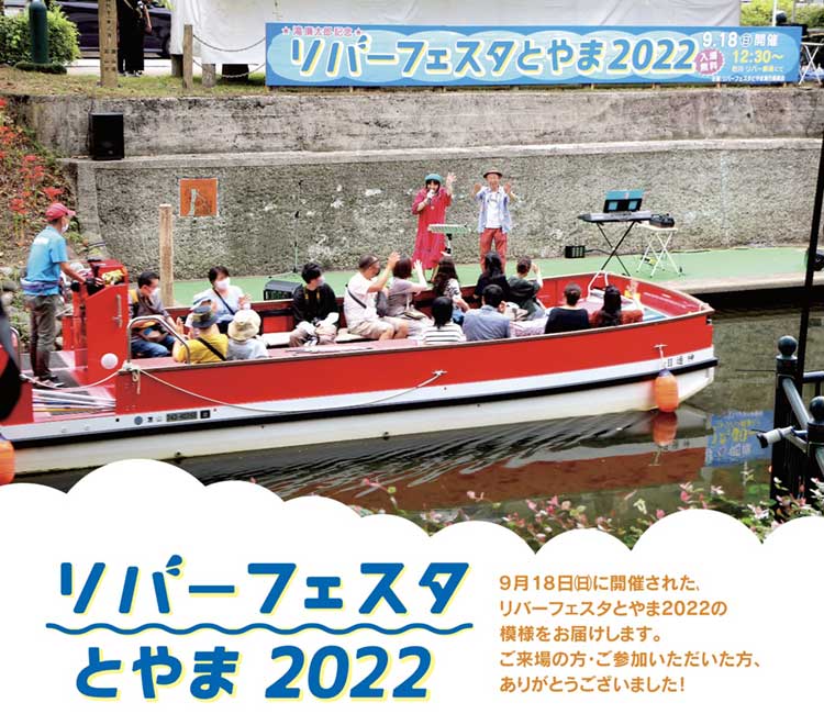 9月18日㈰に開催された、リバーフェスタとやま2022の模様をお届けします。ご来場の方・ご参加いただいた方、ありがとうございました!