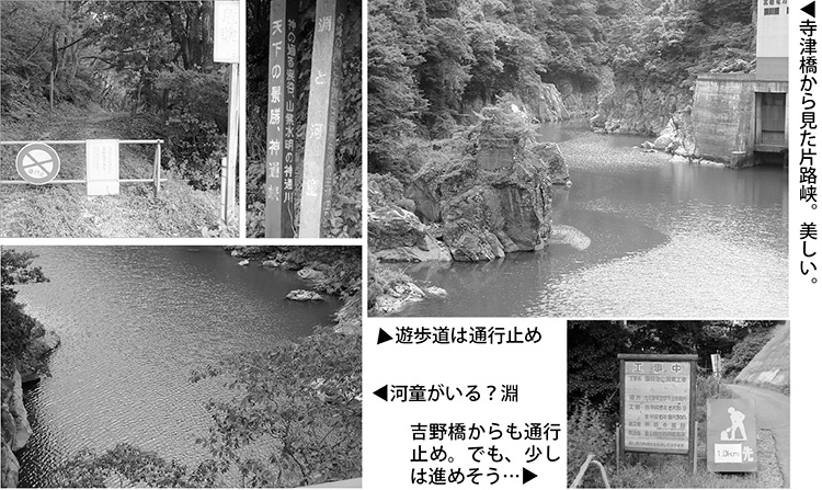 今は危険なため通行止めとなっていますが、片路峡に沿って歩く遊歩道もあります。復旧工事もしているようなので、機会があれば是非一度通ってみたいものです。