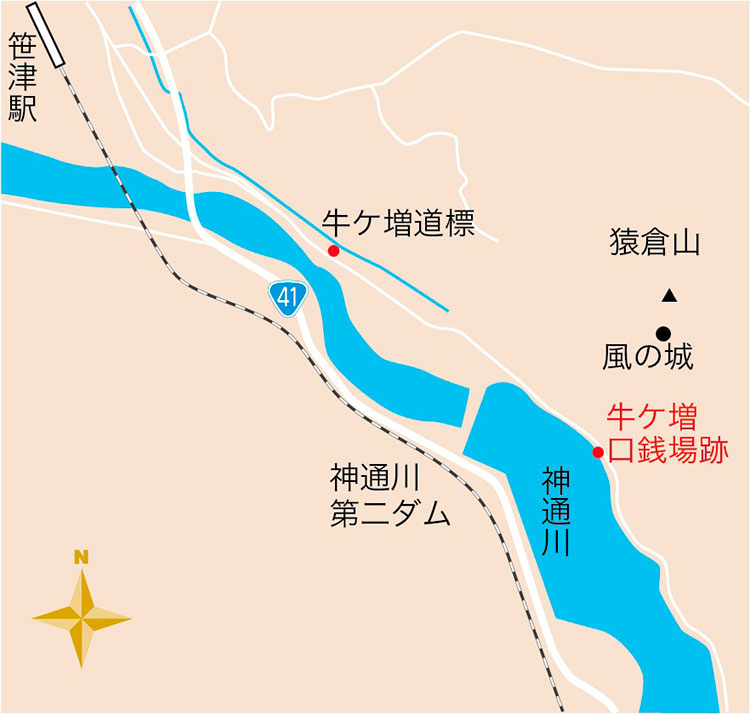 神通川舟航の最終点 牛ケ増(うしがませ)口銭場跡
