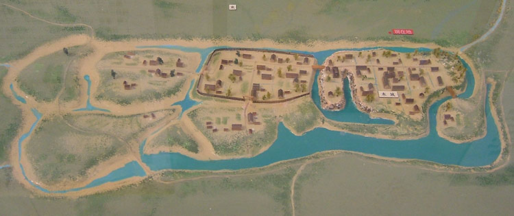 ▲歴史文化館内に展示されている弓庄城の復元模型