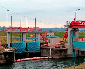 ▲対岸から神通川越しに見た城生城のある丘陵。