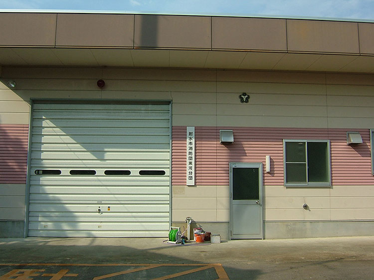 ▲「黒河」の一里塚跡。射水市消防団黒河分団の入口脇に石碑がある。