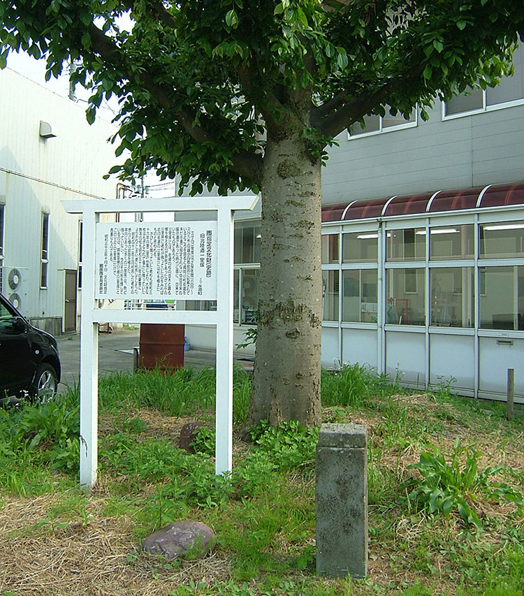 ▲「吉作」の一里塚跡を示す案内板がある。そばに一里塚跡を示すような広場がある。