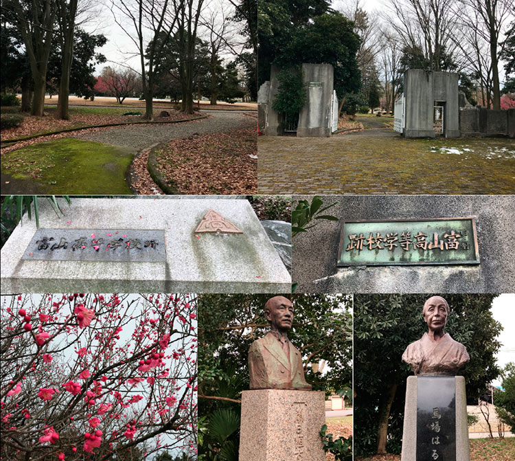 今年5月号のこのコーナーでは、『旧制富山高校(富山大学の前身)創設に力を尽くした 馬場はる旧制富山高校(富山大学の前身)創設に力を尽くした 馬場はる』と題して、馬場はる氏について詳しく紹介した。今回は、かつて旧制富山高校があった馬場記念公園について詳しく見ていきたい。公園に入ると、次のような碑文がある。