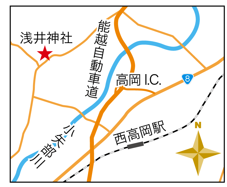 養老元(717)年創建と伝わる浅井神社は、初代社僧が行基とされる。参道の両脇に立ち並ぶ杉並木は、樹齢200〜400年。戦前には富山県指定の天然記念物に名を連ねていたが、台風や降雪等による倒木が増加したため、現在は解除されている。しかし、境内に入って右手にある大けやきは、県指定の天然記念物になっている。樹齢は1200年以上。幹回りは約9・3mで、県内で最大。樹高は約20m。幹は高さ約5mのところで二つに分かれ、一つはすでに枯れてしまったが、もう一方の樹勢は現在も旺盛だ。
