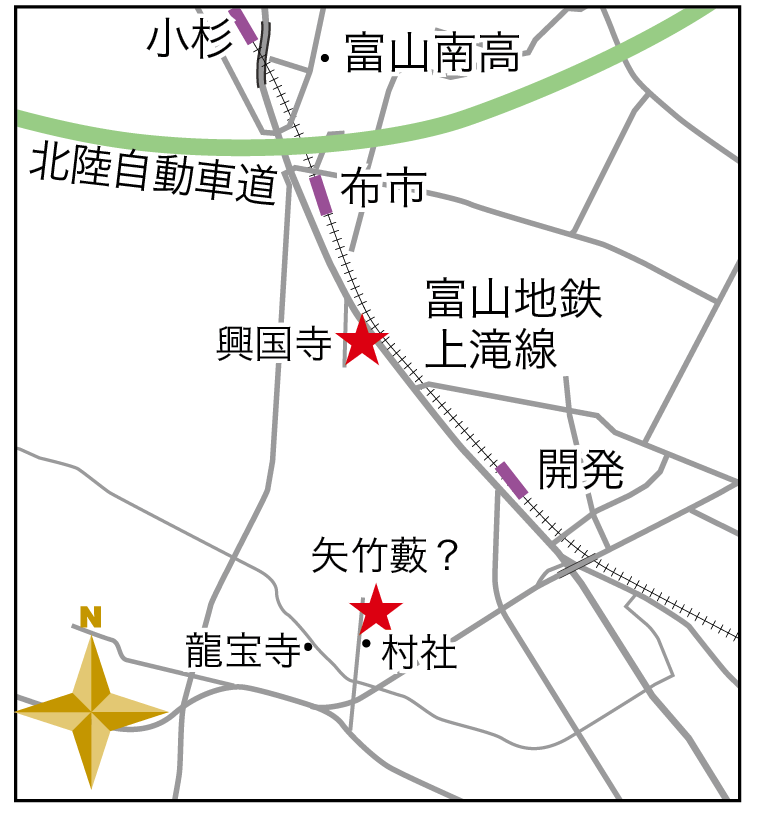 富山県内で、藩と言えば、富山藩や加賀藩だが、富山市布市一帯に、8年間だけ、1万石の布市藩が存在していたという。これは、慶長5(1600)年の関ヶ原の合戦の時、前田利長を東軍へ勧誘する使者を務めた功により、徳川家康が土方雄久(ひじかた・かつひさ)に与えたもの。藩領は、富山市布市を北端として、富山市東猪谷まで続いていたという。富山市布市の興国寺前の「殿方屋敷」、または富山市陀羅尼寺(現・富山市上栄)の「矢竹藪」が陣屋跡という。土方家は、興国寺に所領を寄進したと伝えられる。