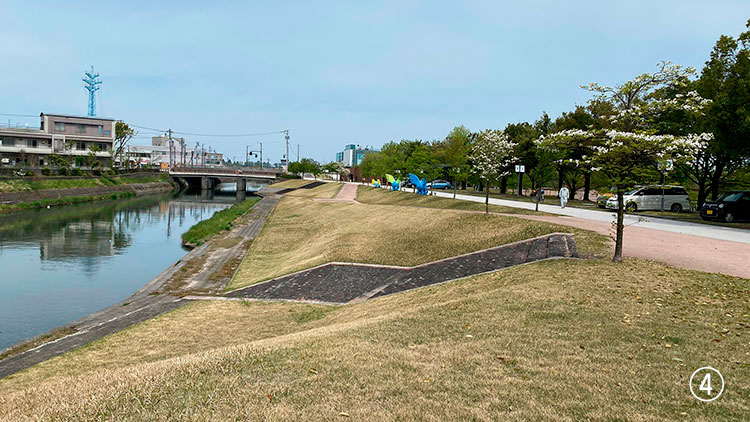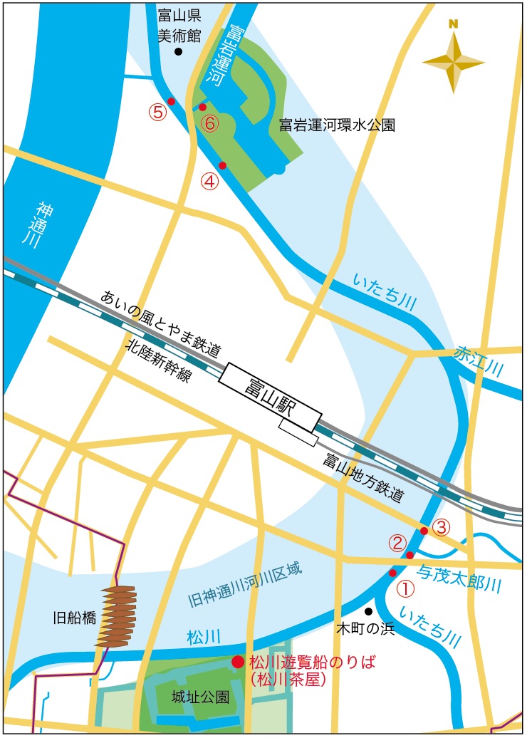 ④環水公園横のいたち川の船着き場