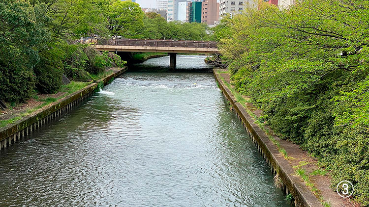 ③上記の2つの段差を下流から見る