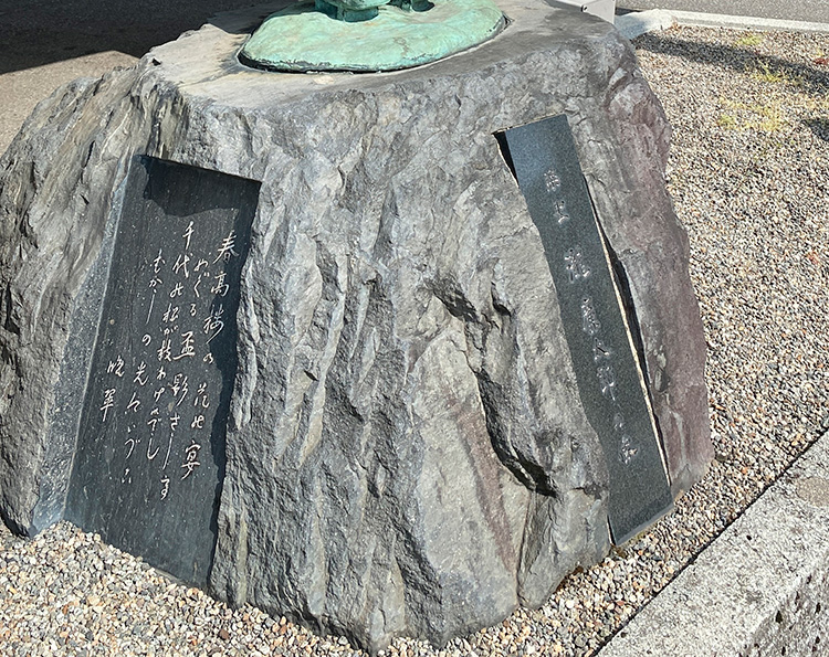 裏面の発起人を記した銘版には、「おきよ会」会長の西泰蔵氏(鹿児島県出身)、森岡政治副知事(熊本県出身)、植木忠夫富大名誉教授(大分県出身)ら15名の名前が並んでいます。