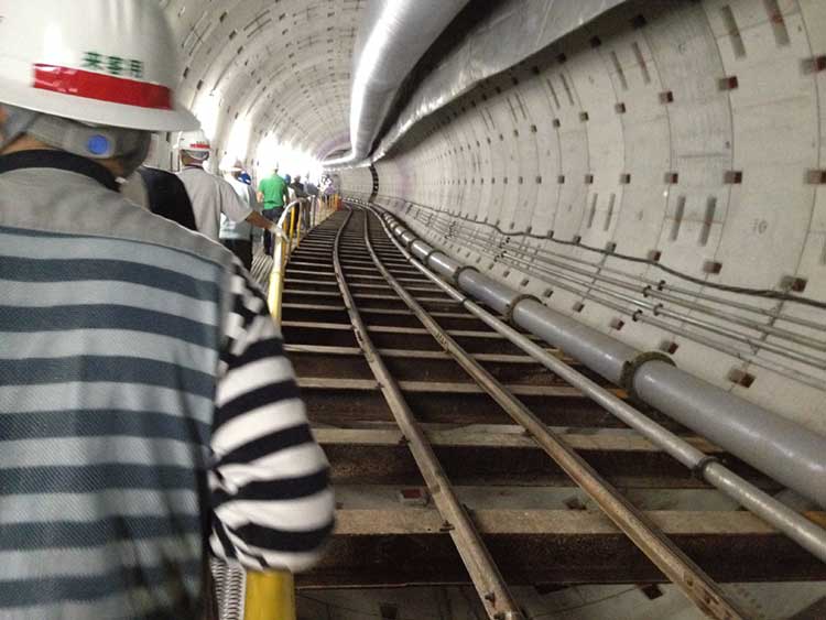 ▲貯留管の内部(2014年9月20日の地元町内会向けの見学会より)