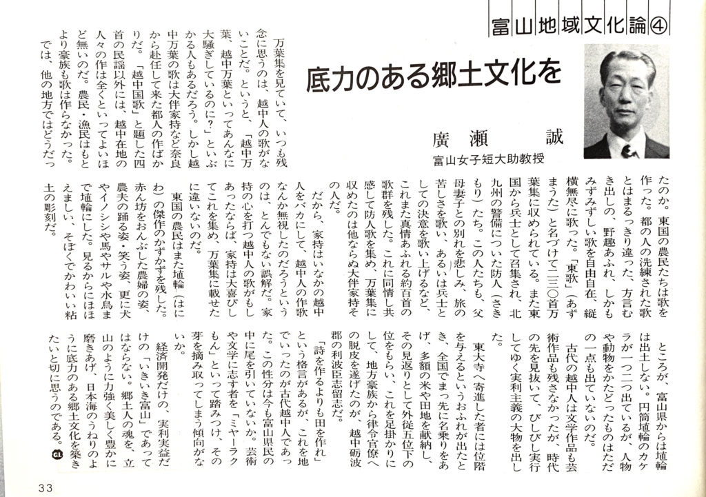 「底力のある郷土文化を」廣瀬誠(富山女子短大助教授 )