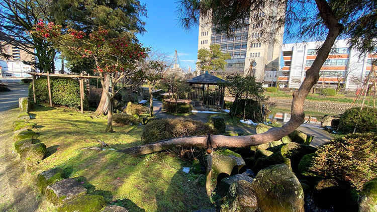 造園的な見地から整備された松川べりの「親水の庭」