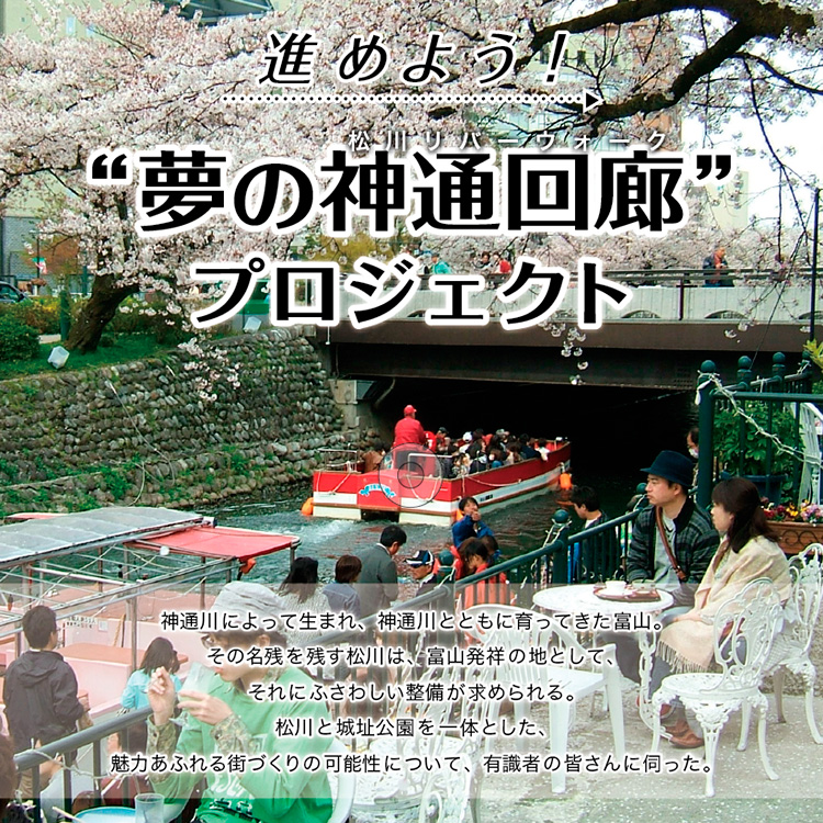 川田 これは100年に一度あるかないかの壮大なプロジェクトです。松川を美しく修景して、名実ともに富山のシンボルに育てていけるかどうか、われわれ市民の“意志”が今、試されている、と言えますね。