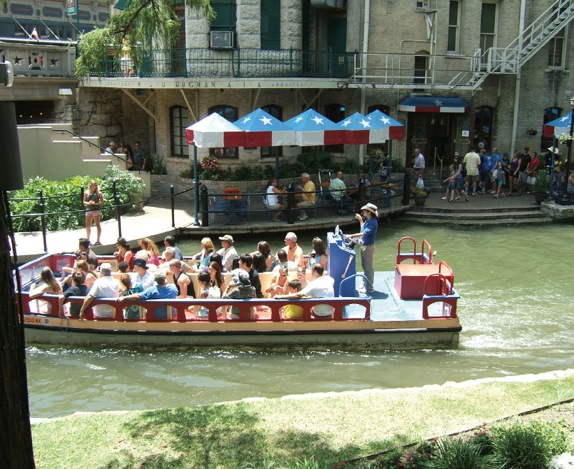 市内中心部を流れる川べりの一帯を、自然と緑とお洒落なカフェテラス、ブティックなどが混在する美しくもにぎやかな空間に整備し、世界中からコンベンション客や観光客が訪れている、アメリカテキサス州のサンアントニオ市。