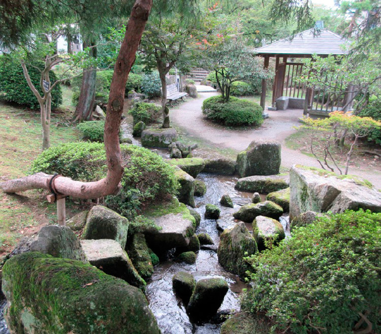 平成27(2015)年、富山城址公園の北東部に日本庭園が完成。日本庭園としては小規模だが、平成元(1989)年に松川べりに完成した「親水のにわ」とともに、緑と水を感じることのできるゾーンとなっている。