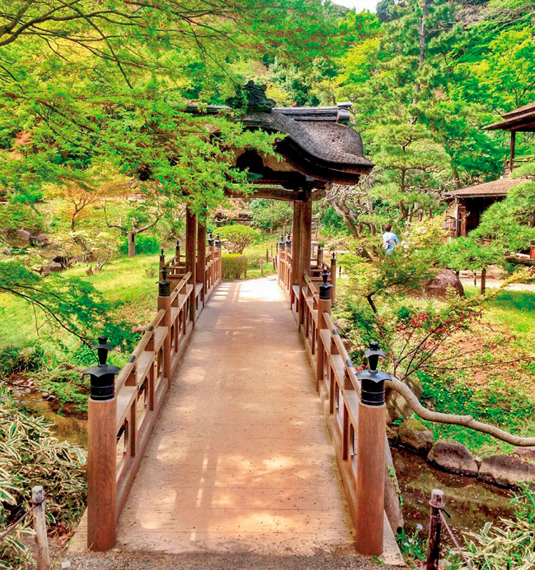 造園主・原三溪が、存続の危ぶまれた歴史的価値の高い建築物を全国から移築。室町時代から安土桃山時代の寺院建築や古民家、茶室などの古い建造物が数多く配置されているこの庭園は、「西の桂離宮、東の三溪園」と言われるほどに評価が高い。また、原が一木一草に至るまで吟味したという園内は、自然そのままのたたずまいであり、人口の景であることを忘れさせる。