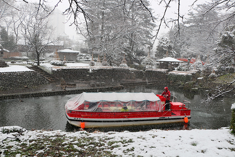 ▼富山の雪景色を楽しもうと企画された、松川遊覧船のウィンタークルーズ。(2020年2月)