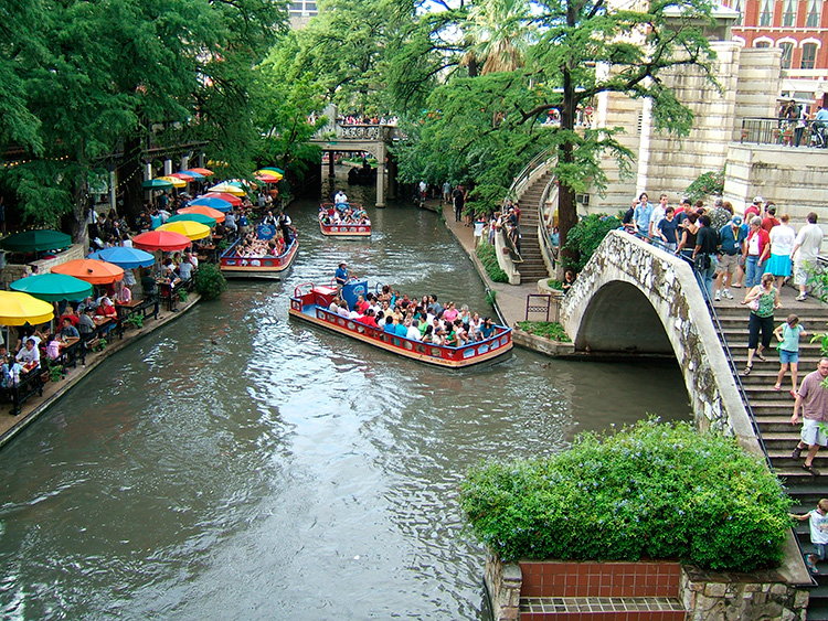 ▼様々な趣向を凝らし、理想的な水辺空間を作り上げたアメリカ・サンアントニオのリバーウォーク。