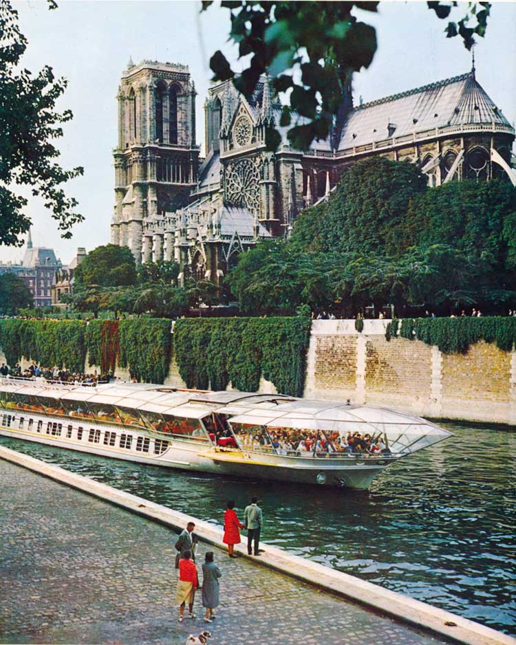 ▼世界遺産の集まるスポットを効率よく、優雅に巡ることができるセーヌ川の遊覧船。パリ観光の定番として、観光客の人気を集めている。対岸のノートルダム寺院は、まるで松川河畔に建つ富山市庁舎のようであり、セーヌ川の遊覧船と共にパリ市のシンボルとなっている。