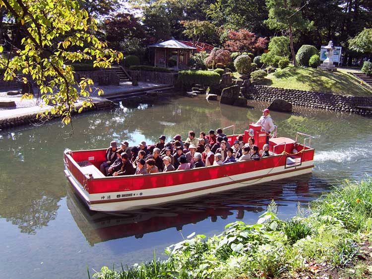 ▼県都・富山市の中心部を流れる松川を、四季折々の風情を感じながら巡る松川遊覧船(2017年)。1987年の創業以来、“水の都”とやまのシンボルとして認知度が高まってきている。富山市のシティフラッグとしても採用され、市民の誇りの高まりにもつながっているようだ。