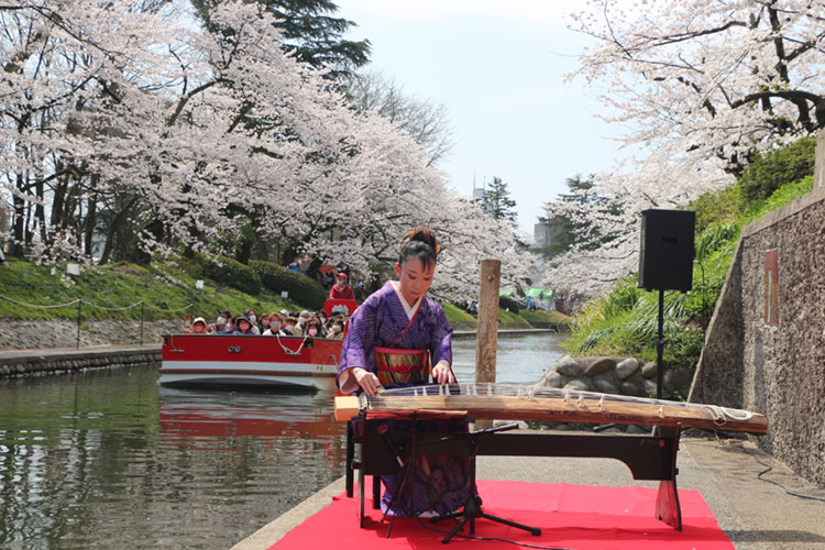 ▼松川の土手を切り取って、2000年に完成した「リバー劇場」。毎年、春には箏の演奏会、秋には「リバーフェスタ」などが開催され、“水の都とやま”の賑わいを作り出している。(写真/箏演奏家 太田衣代さん)