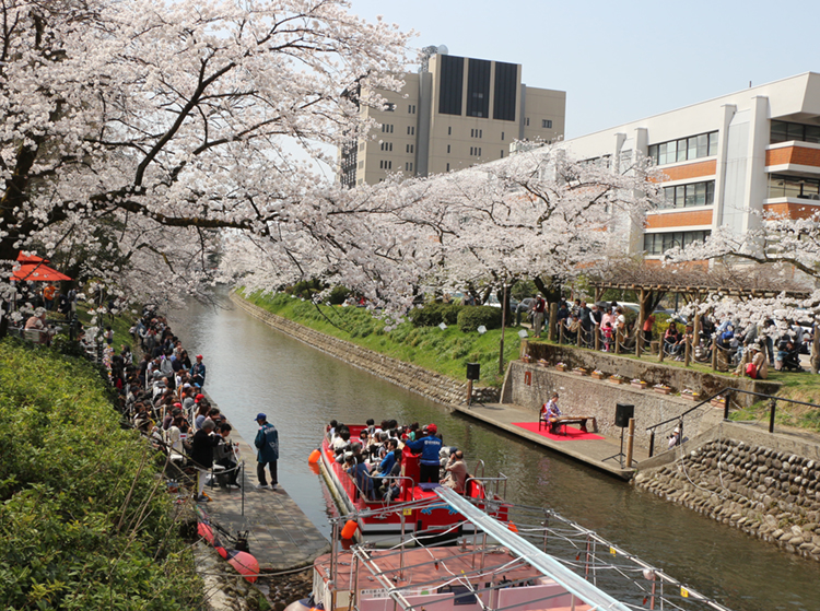 富山の春の風物詩として、すっかり定着してきた松川遊覧船だが、混雑時の乗客安全確保のために乗船場の拡張工事が必要になるなど、課題も見えてきた。