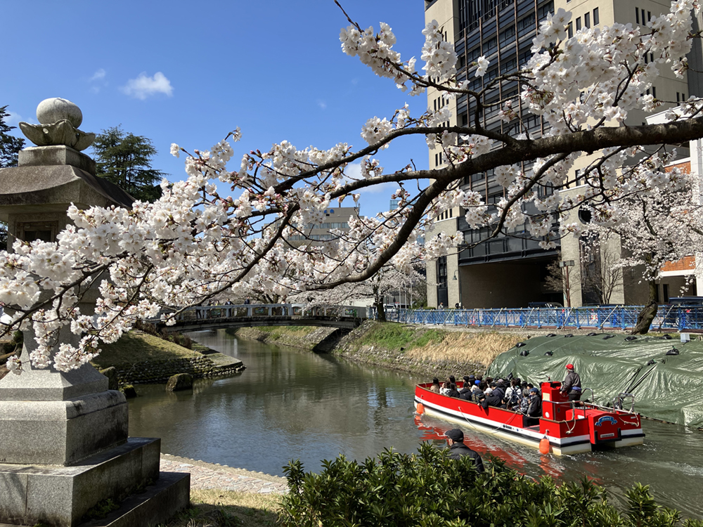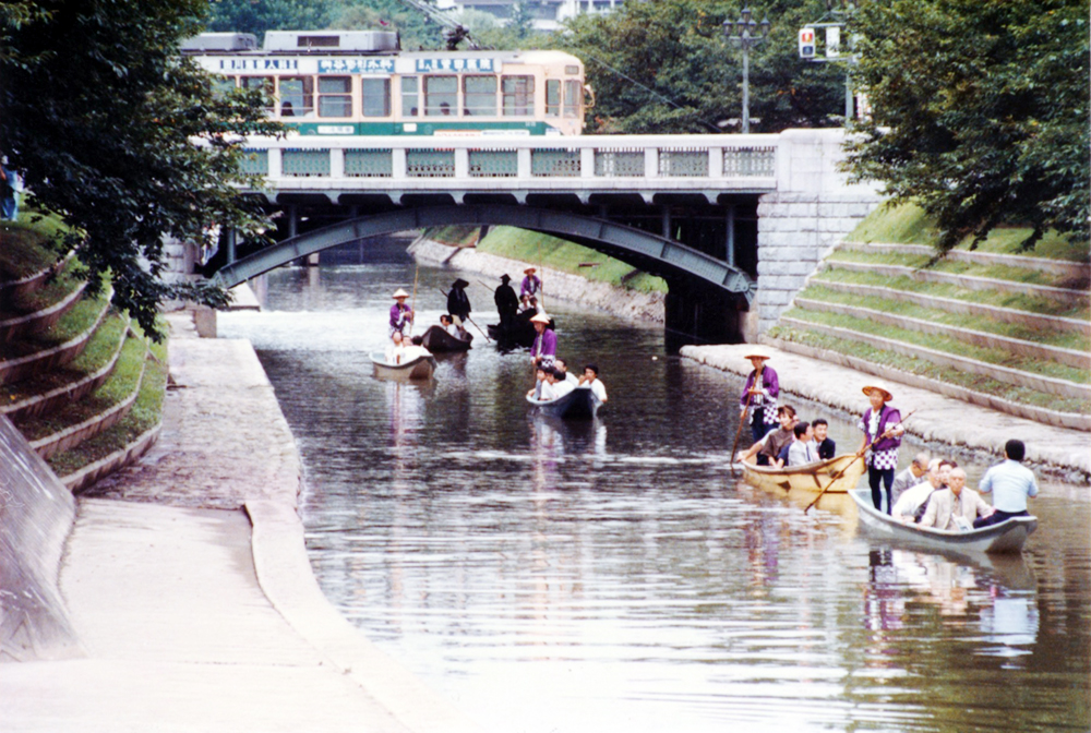 ▼1988(昭和63)年に運航を開始した松川遊覧船。以来、「松川べり一帯を”水の都とやま”のシンボル空間にしよう!」との壮大な目標の基盤として、毎年運航している。