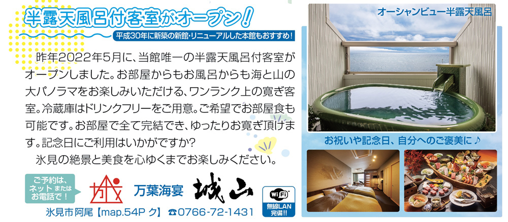 今年の夏は氷見にでかけてみませんか?氷見には、海産物をはじめとしたグルメのほか、文化や歴史を感じる魅力的なスポットがたくさん。まず訪れたいのは、まちなかにあるまんがロード。氷見は日本まんが界の巨匠・藤子不二雄Ⓐ先生の出身地であることから、先生の人気キャラクターのモニュメントがまちの至るところで登場し、楽しませてくれます。昨年から新しく4体のかわいいキャラクターたちが仲間入りしました。市街地や富山湾が一望できる朝日山公園には、巨大遊具が楽しめる「見晴らしの丘」があり、氷見市海浜植物園とともに親子連れで楽しめるスポットです。お腹が空いたら「ひみ番屋街」のお店でキトキトの海産物や氷見牛、氷見カレー、氷見のうどんなど、氷見ならではの味を堪能できます。また、「氷見市漁業文化交流センター」の最新VR(仮想現実)などで氷見の漁業文化を学べるほか、前田慶次ゆかりの阿尾城跡や大伴家持ゆかりの十二町潟水郷公園、江戸時代の剣術家斎藤弥九郎の像がある朝日山公園で歴史に思いを馳せてみるのもいいかも。まちめぐりには、まちなかを便利に巡れる電動三輪車「ヒミカ」がおすすめ!さわやかな潮風を感じながら氷見を楽しもう!