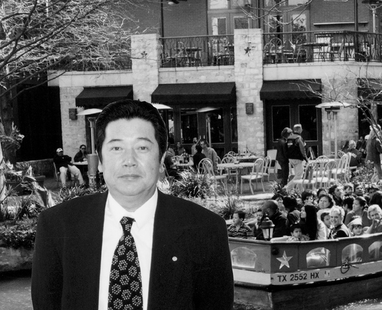 サンアントニオとの出会いは、近くのシギーンに知人が居たことや、副社長時代、テキサス大学に医薬品の見学・研修に訪れたのがきっかけ。その後も魅力にとりつかれ、何度もリバーウォークを訪れる程のロマンチスト。「20年前、サンアントニオ市から、富山市に姉妹都市の申し込みがあったのに、実現しなかったのが今も残念です」