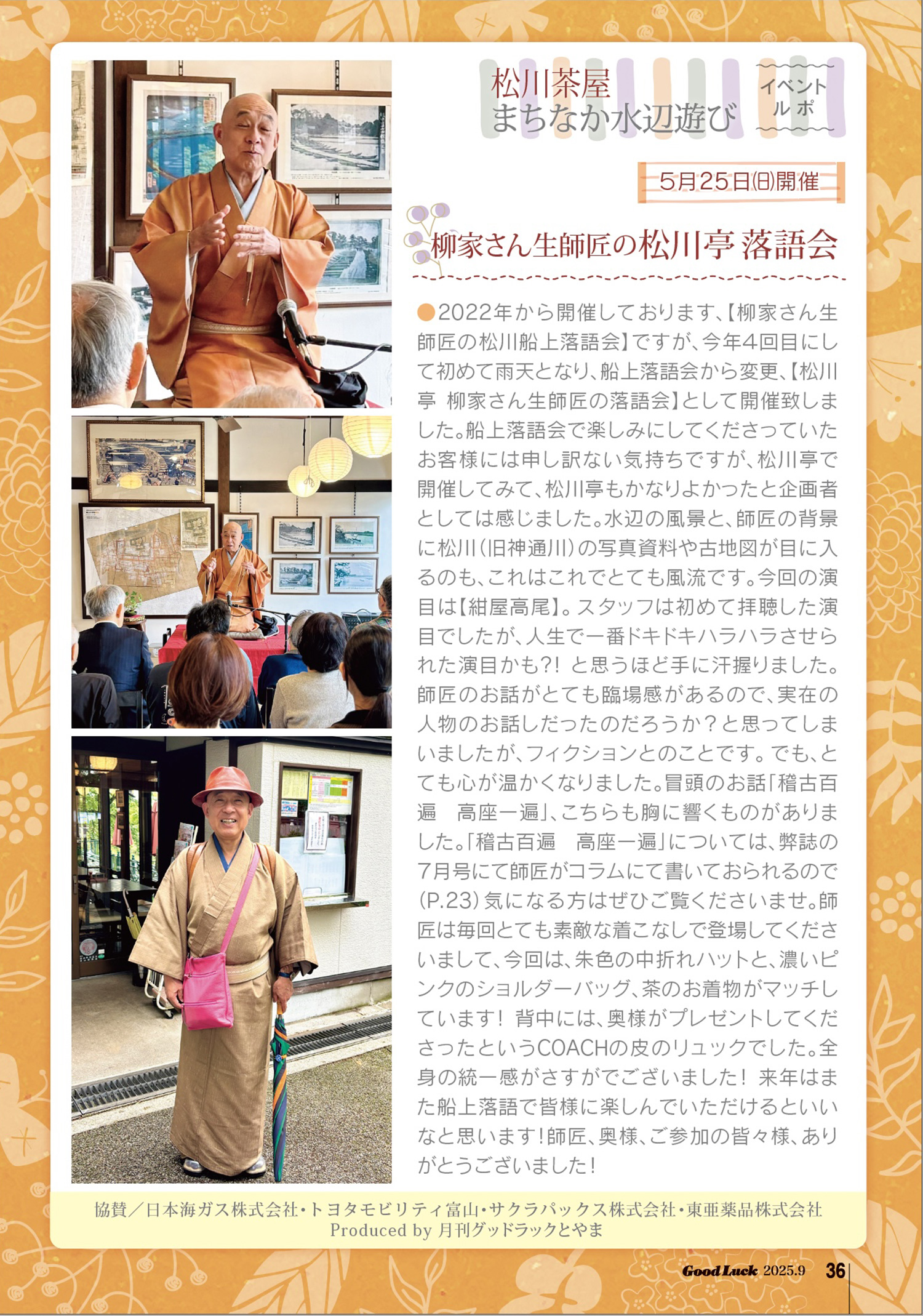 柳家さん生師匠の松川亭 落語会 25年5月25日㈰開催