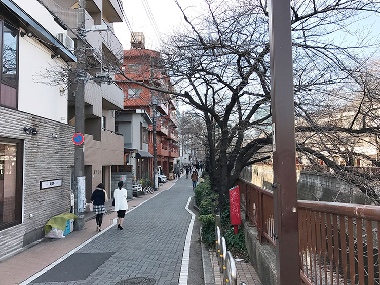 その他、近年、冬のイルミネーションや桜で話題になっている目黒川にも足を運んでみました。川はいわゆるコンクリート三面張りの味気ないもので、そばの遊歩道もたまに車が通ったりして落ち着かないのですが、沿道のところどころにお洒落なカフェなどがあり、3月の時点でもそこそこ人通りがありました。今後の動向が注目されます。(青)
