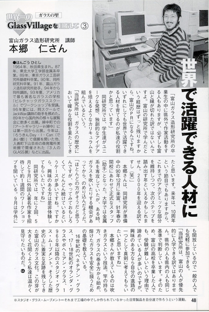 3)富山ガラス造形研究所 講師 本郷 仁さん(2000年1月号)