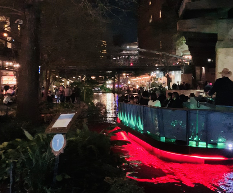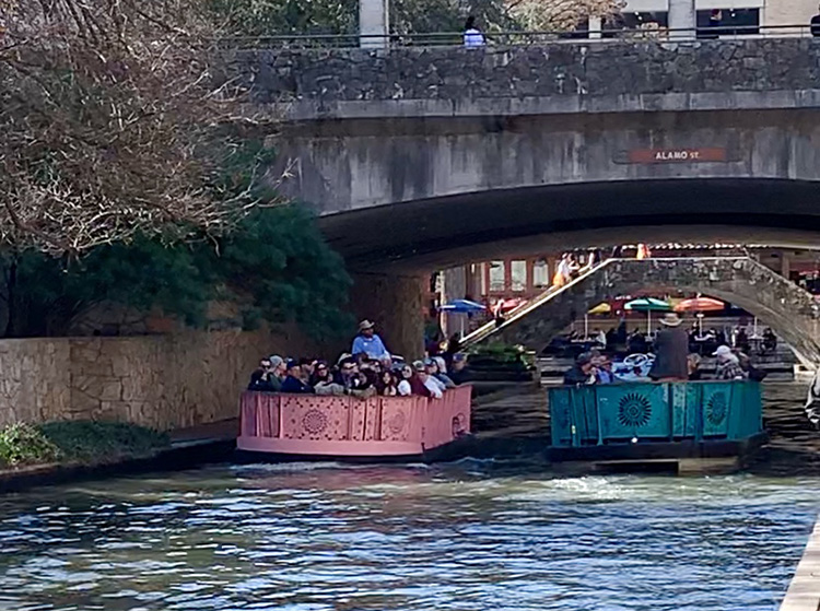 サンアントニオの名前の由来となった「聖アントニオ」の像や、川を挟んで観客席と舞台がある野外劇場、巨大な彫刻、周辺の高層ビルなどなど…35分間、ひとときも休む事なく船長さんがガイドしてくれました。