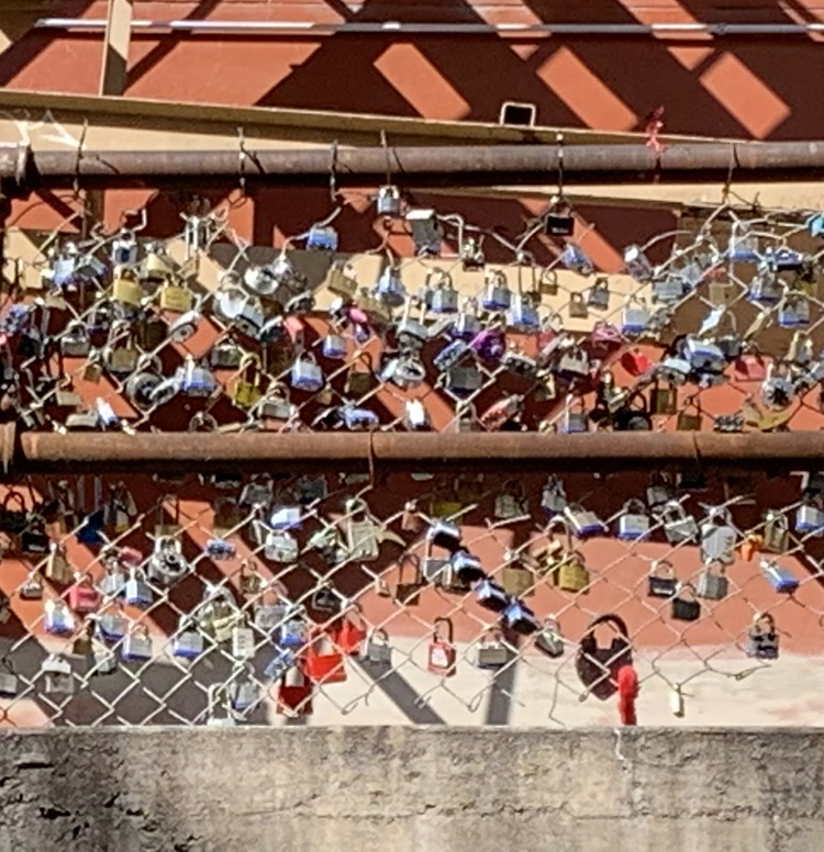 Love Lock Bridgeという、恋人達が永遠の愛を誓って金網に錠を付ける名所も船から眺めました。どこの観光地にも恋人達のためのスポットは重要なのですね!