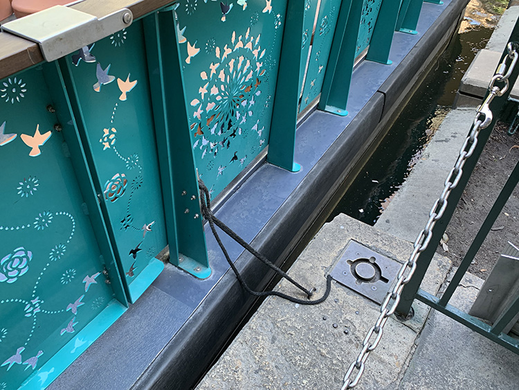 途中、信号がありました。水上交差点のようなインフラにワクワクします。サンアントニオ川の本流との接続部です。本流は水深が約6m。それ以外は約2mだそうです。水深を聞いてしまうと落水することは無いとはいえ、ちょっとドキドキします。