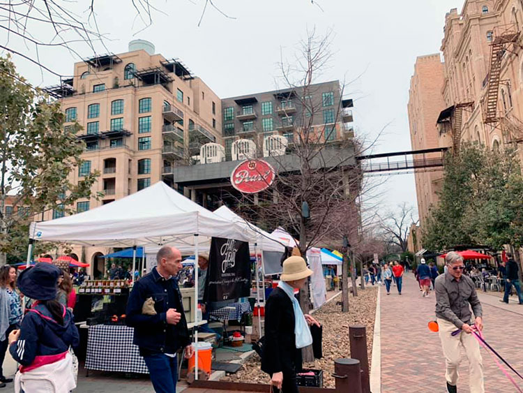 さて、目的地パール醸造所に到着しました! 毎週末ここでオーガニックマルシェが開かれているそうで、狙ってきたわけではありませんでしたが、ラッキーでした。すごい人で、広場は大変な賑わい。新鮮な野菜や果物、その場で絞ってくれるフレッシュジュース、コスメ、スイーツ、軽食、ハチミツなどなど何でもあります。観光価格で、いいお値段しています。出店だからでしょうか、商品価格に加え、会計時にチップの支払いの必要がありました。マルシェに出店しているのは、サンアントニオの地元のメーカーさんばかり。〝地元メーカーを引き立て、地元にお金を回す〟というハッキリとしたスタンスを感じます。私は、一目惚れした地元メーカーさんのチョコをごっそりお土産に買い込みました! 後ろに並んでいた観光客のおじさまが(州はどちらか忘れました)、「無事に日本に持ち帰れるように、丈夫な僕のエコバッグ(おじさまが買ったばかりの)をあげるよ!」と。じわ〜ん。