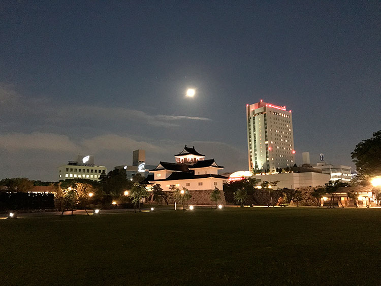 ▲滝廉太郎少年も富山城(当時は本丸御殿)の上に輝く月を見たのかな、と想像も膨らむ。