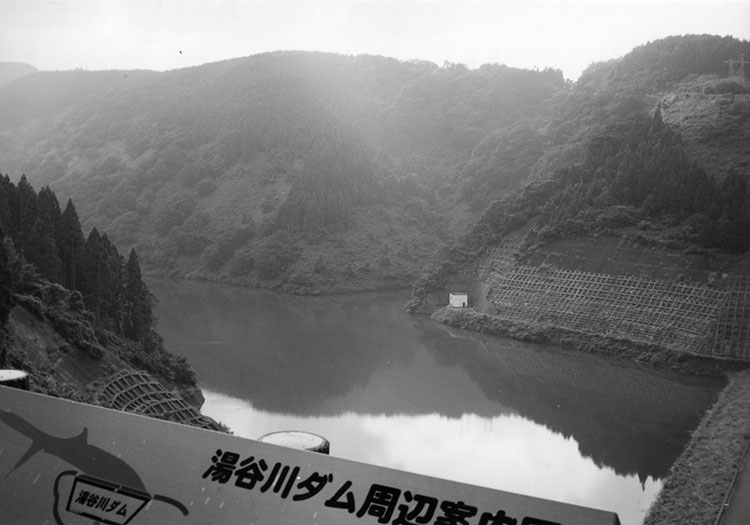 ▲湯谷川ダムの湖面が見られる場所が途中にある。