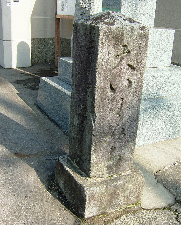 ▲門前には寛政年間に建立された道しるべ。「寺の方江戸道、是より東大いわみち」と刻まれ、ここから大岩不動への参道が分岐していた。