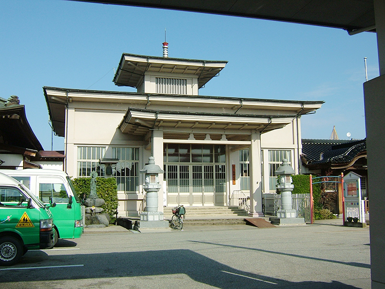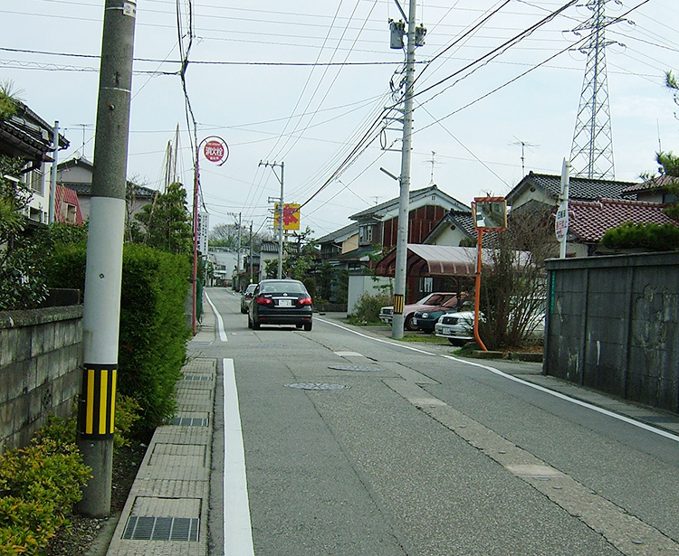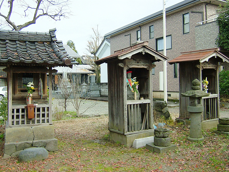 ▲正願寺前にある薄地蔵尊。謙信が敵の首を埋めた首塚に自然石の石塔を立てたもの。