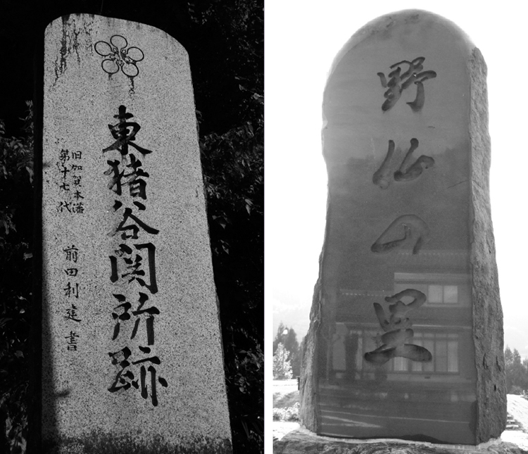 ▲旧加賀本藩第17代・前田利建氏の書による「東猪谷関所跡」の石碑。