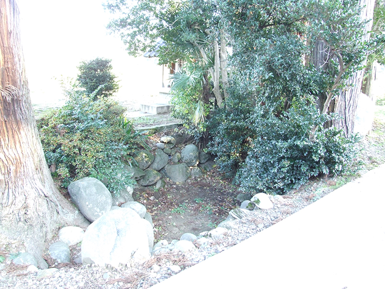 ▲檀山神社。大正13年に月岡文化会が境内に月見ノ滝を造った時に、縄文時代後期(4,000年前)の遺跡が発見され、壇ノ山遺跡と名付けられた。