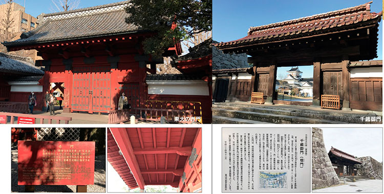 総欅造りの三間薬医門で、屋根は切妻造本瓦葺、桁行6メートル、梁間1.9メートル。同一の建築様式の城門は、「東大の赤門」として知られる旧加賀屋敷御守殿門(国重要文化財)など数少ないそうです。なお、旧加賀屋敷御守殿門は、加賀藩13代藩主・前田斉泰が、文政10年(1827年)に11代将軍徳川家斉の娘・溶姫を正室に迎えた際に建立された御守殿門です。