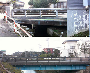常願寺川に架かる赤い欄干の立山橋そばの常西水神社の隣にあるのが、こちらの「常西公園小水力発電所」の水車である。水車が採用されたのは、環境啓発のためという。「環境モデル都市」の認定などを受けた富山市が、二酸化炭素の削減を見込めるクリーンエネルギーとしての常西用水を利用した小水力発電を検討、2011年3月に設置した。常西用水は常願寺川上流の横江堰堤で取水し、両岸分水工を経て、左岸連絡水路橋を渡ってこの場所まで流れて来ている(昨年9月号で紹介)。最大出力は9・9kW、年間発電量は標準世帯23軒分に相当する82,600kWh。現在の発電出力や本日の発電量などが電光表示されている。なお、常西用水は、常願寺川左岸の洪水対策を目的に、オランダ人技師ヨハネス・デ・レイケの指揮の下、1893年(明治26年)に完成している。