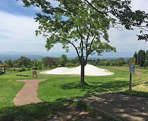 呉羽山展望台の後ろの小高い丘の上に、大正天皇の御製漢詩碑と、昭和天皇の御製歌碑が立っている。