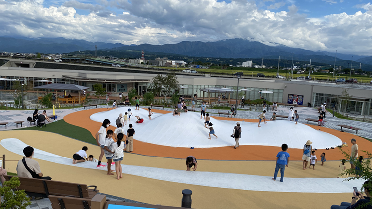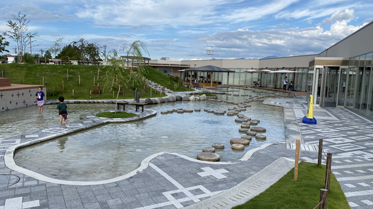 昨年4月22日、黒部市の国道8号線沿いにオープンした「KOKOくろべ」は、子どもが水遊びできる水辺とふわふわドーム、水辺を眺めながらゆったりと過ごせるフードコート、農産物やお土産売り場を備えた道の駅。水辺にはたくさんの飛石があり、大人でも楽しめる。「KOKOくろべ」という名称は、「ここから黒部が発展してほしい」「ここは黒部」という思いを込めて名付けられたそう。開業から4カ月で来場者が50万人を突破し、多くの人が訪れる場所になっている。