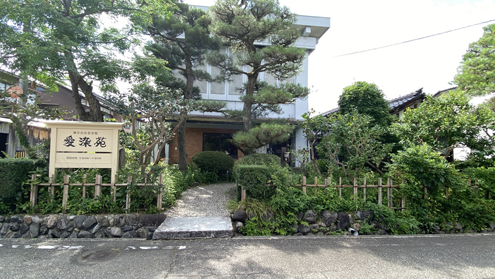 棟方志功記念館「愛染苑」は、棟方の良き理解者であり支援者であった石崎俊彦氏(1912年~2003年)が、多数の棟方作品と土地を福光町(現南砺市)へ寄贈して設けられた記念館で、福光美術館の分館になっている。