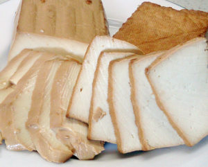 3.豆腐に付いている味噌を水で洗って水気を拭き取る。